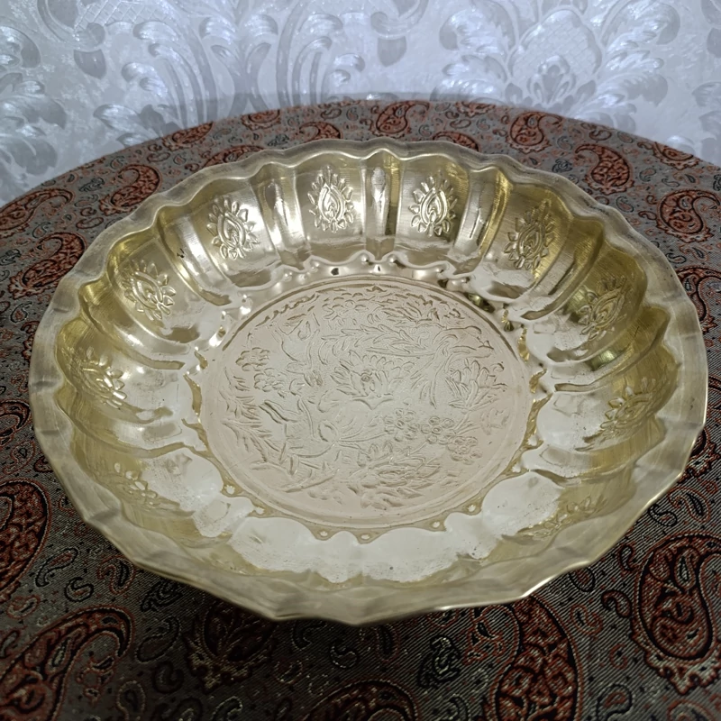 ظرف میوه خوری برنجی قلم زنی شده با ضخامت بالا